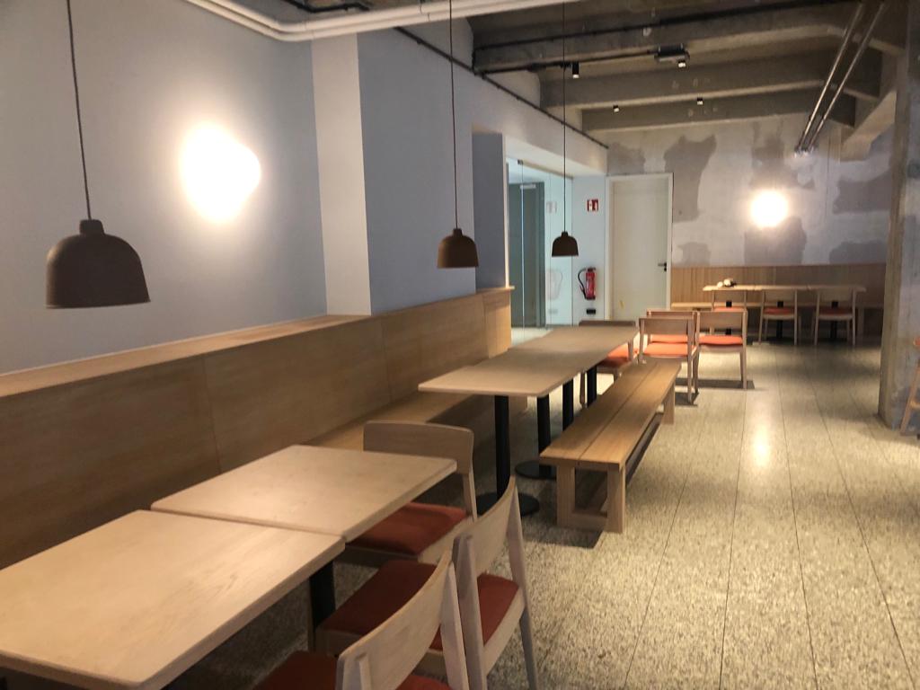 Solid timber tables, benches, bar stools with suede leather, dining chairs, ready for installation.