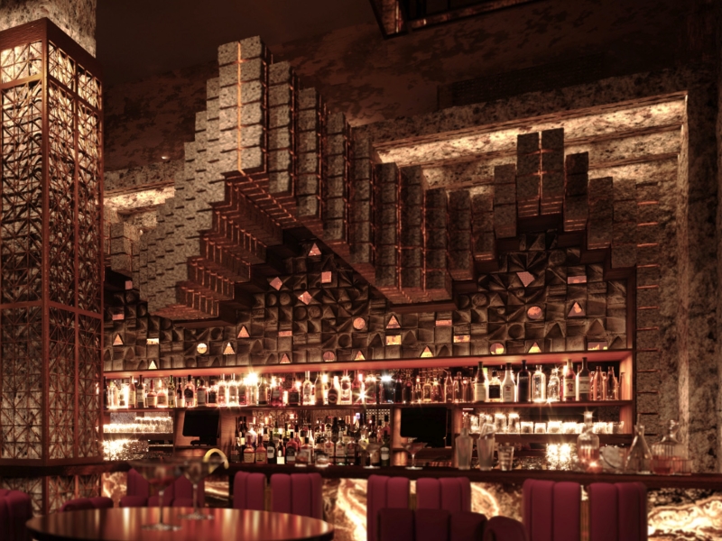 STATEMENT WALL PANEL FOR CHANCA LOUNGE BAR IN DUBAI BY ALT COLLECTIVE AND DKT ARTWORKS