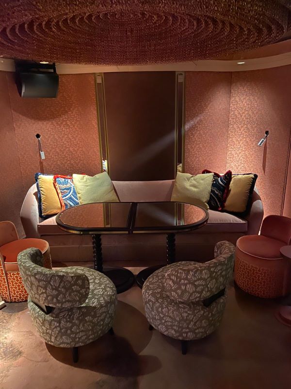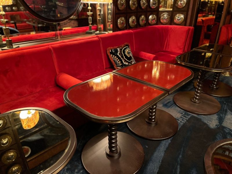 The NYX VIP Lounge showcases exquisite high-end furniture that enhances its luxurious ambiance. Rich textures, sleek lines, and luxurious materials define the lounge’s aesthetic, creating a cohesive look. Plush velvet offer a tactile sense of luxury, while polished metals and high-gloss finishes add a modern edge.